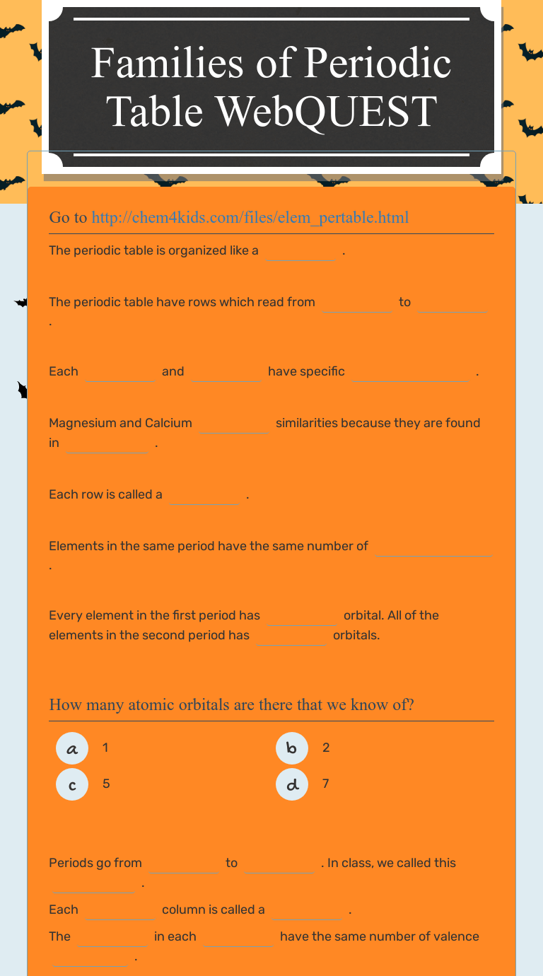 Identify elements that will have the most similar properties to a given element. Identify the number of energy levels, valence electrons, the valence energy level, and the most common ion an element will form for any . Families or groups are designated by what? Elements in the same period have the same number of Families on the periodic table include, in addition to noble gases and halogens, the alkali metals, alkaline earth metals, transition metals, lanthanides, and . Properties fell into families or groups. Using mendeleev's system elements with similar___________________. Element family name labels and colors. Each family's characteristics on your "families of the periodic table" worksheet. The chemical behavior of atoms is controlled by their electron . Elements in each family have similar but not identical properties. Each family reacts in a different way with the outside world. Understanding systems why do atoms of group 1 elements lose electrons.